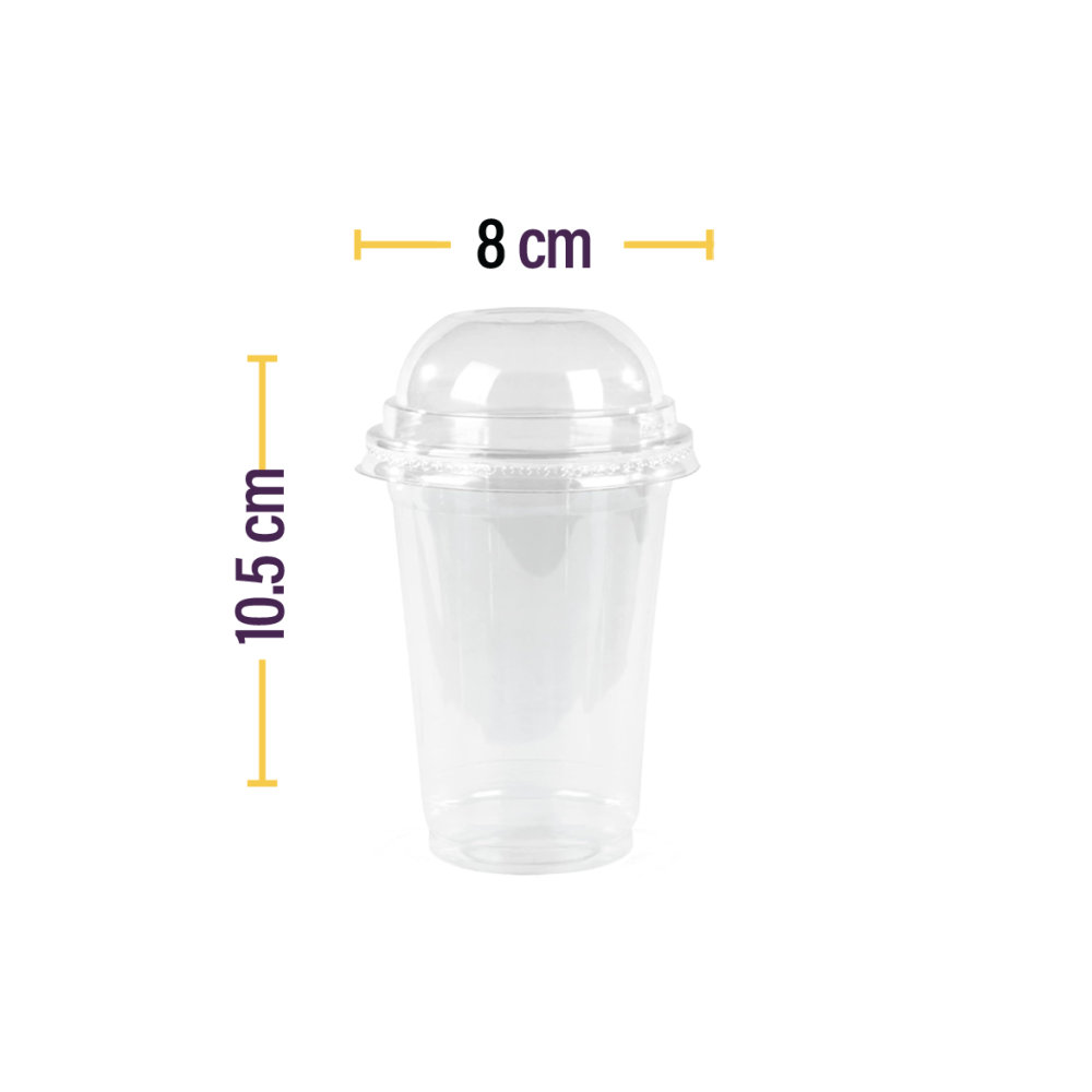 كاسات عصير شفافة مع غطاء قبة ومزاز 12 اونص، مصممة لتقديم المشروبات بطريقة عملية وأنيقة. مصنوعة من بلاستيك عالي الجودة وخفيف الوزن، مما يجعلها خيارًا مثاليًا للعصائر، السموذي، القهوة الباردة، والمشروبات الغازية.